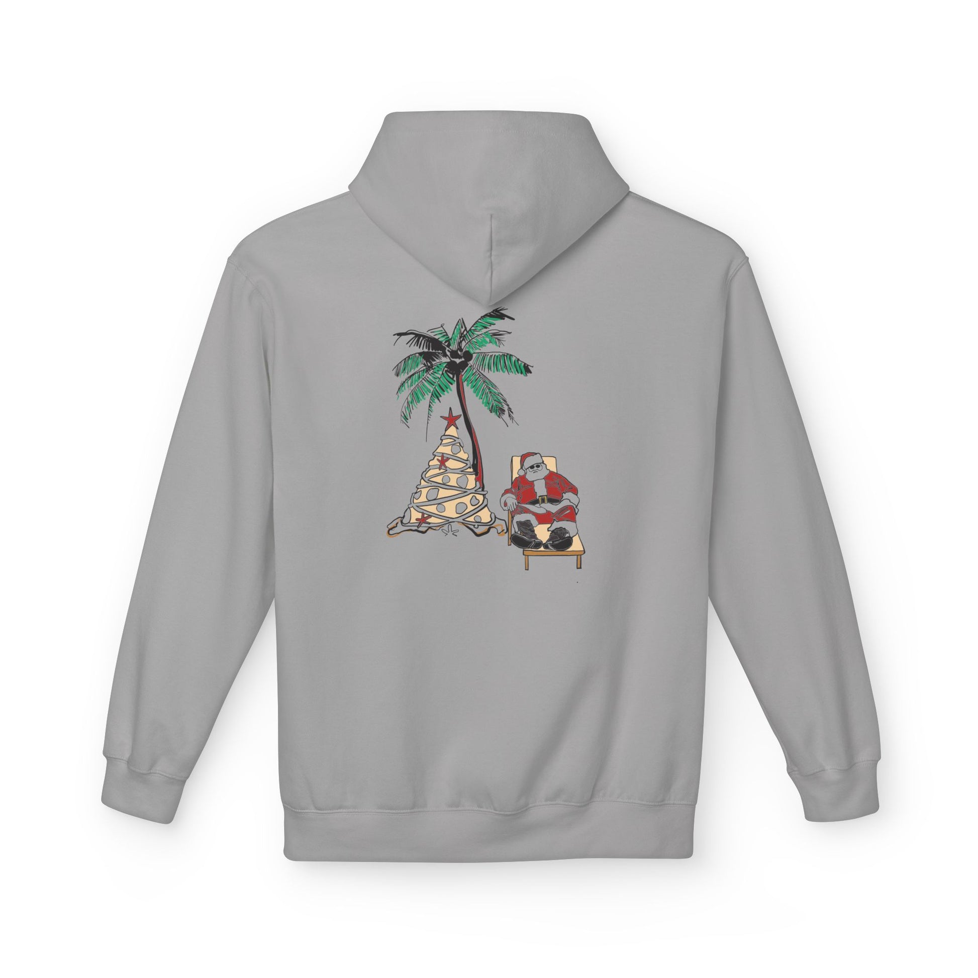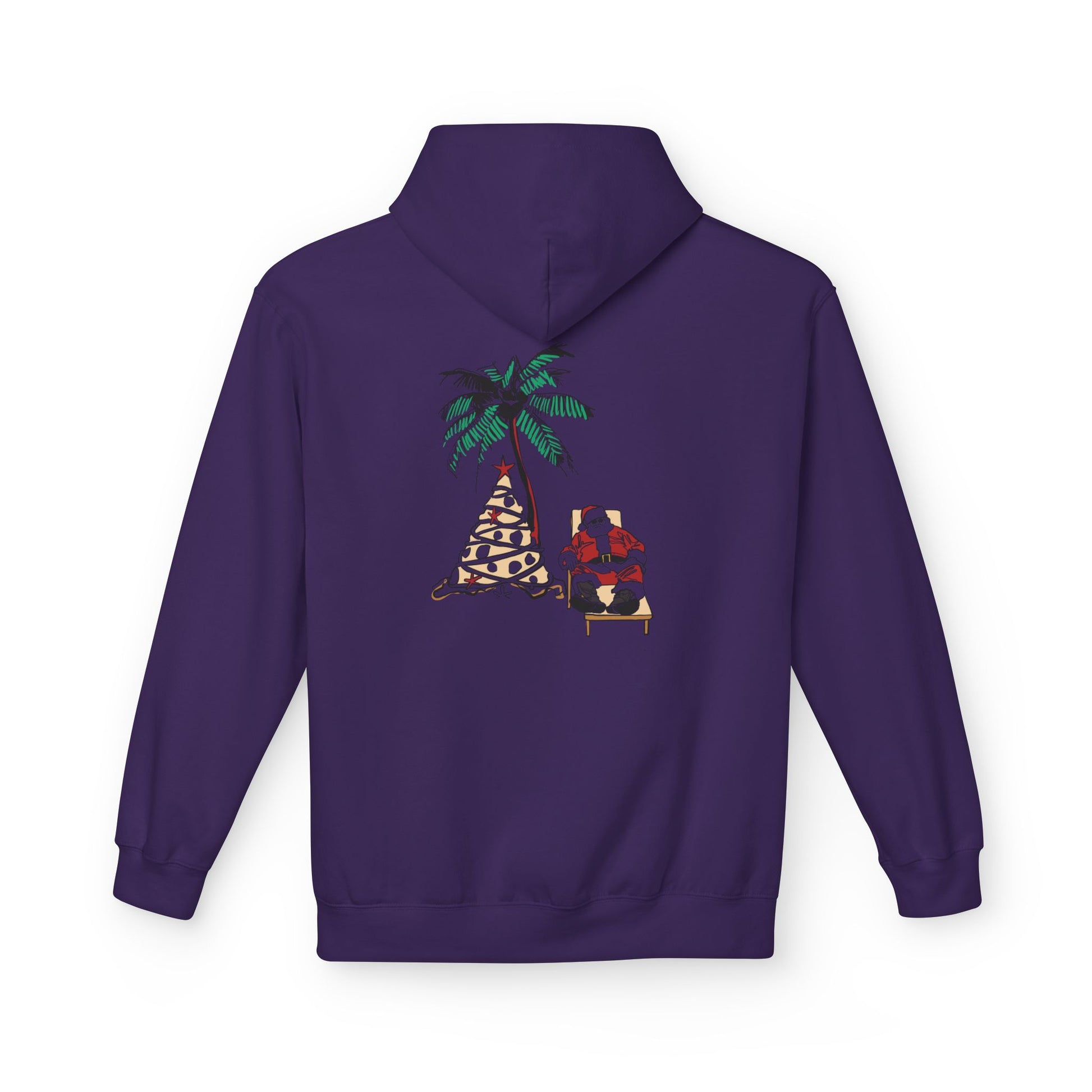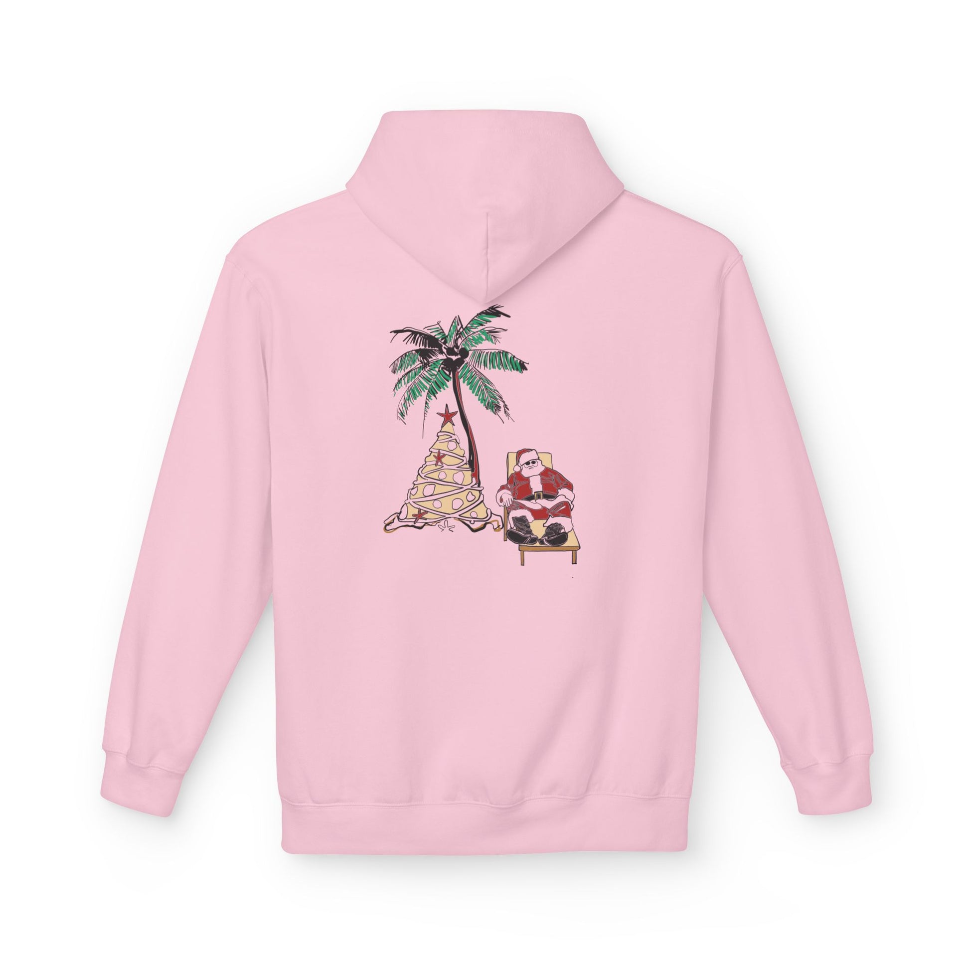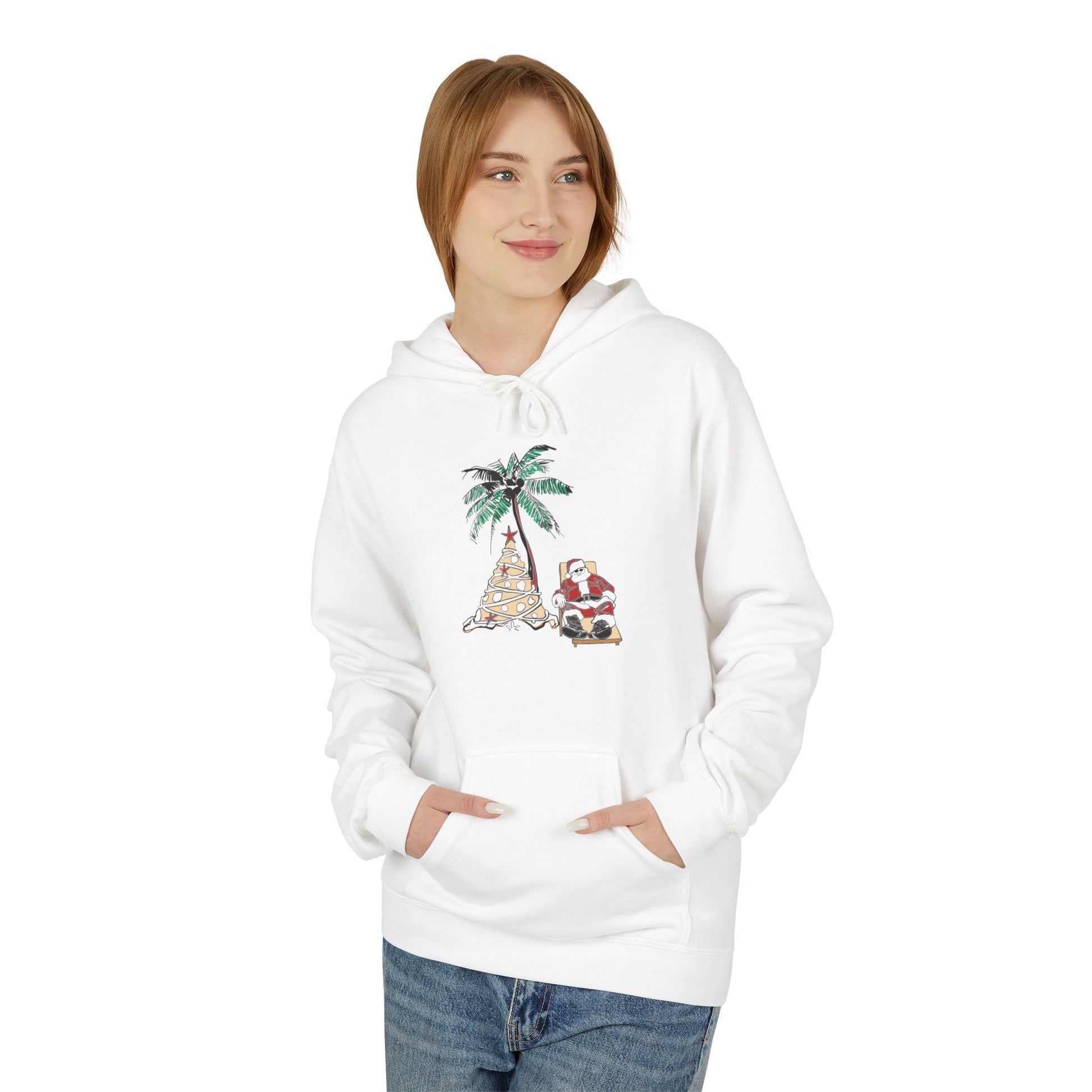 Who says Christmas has to be cold? Our "Tropical Santa" Midweight Hoodie features a relaxed Santa Claus catching some sun next to a decorated palm tree. It’s the perfect blend of holiday spirit and laid-back summer vibes, designed for those who prefer the beach to the snow.